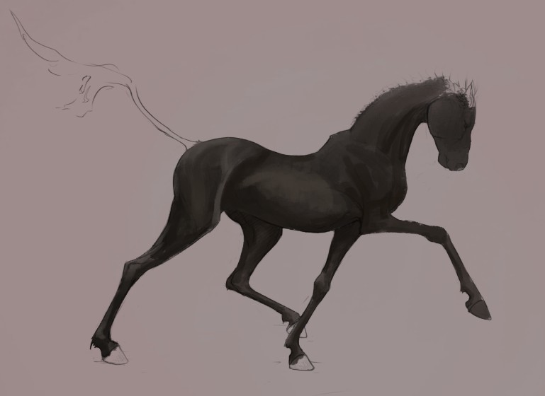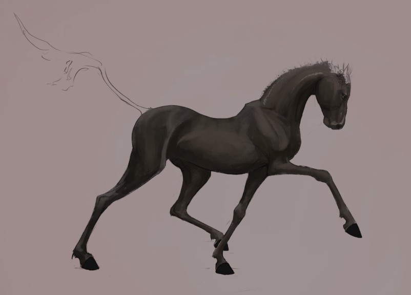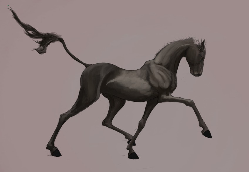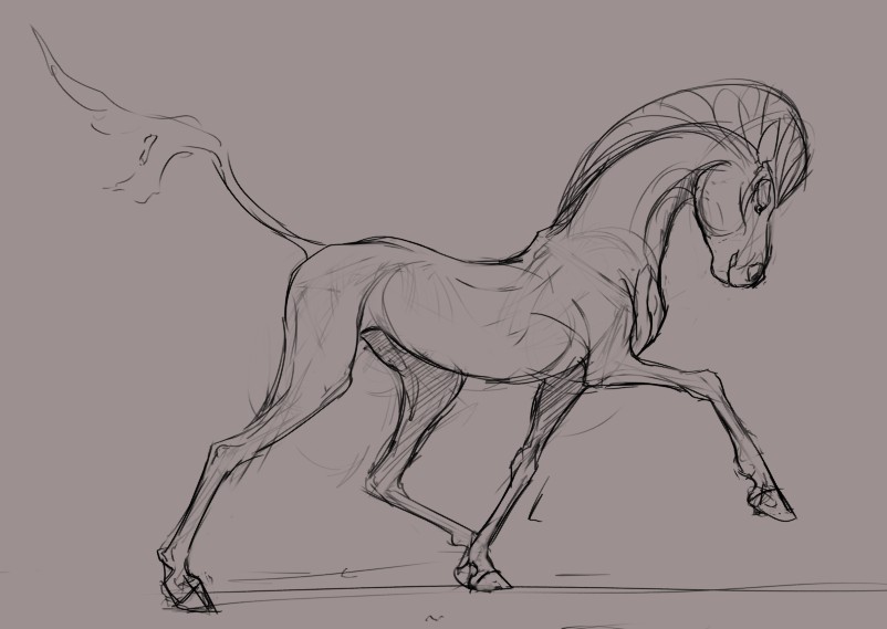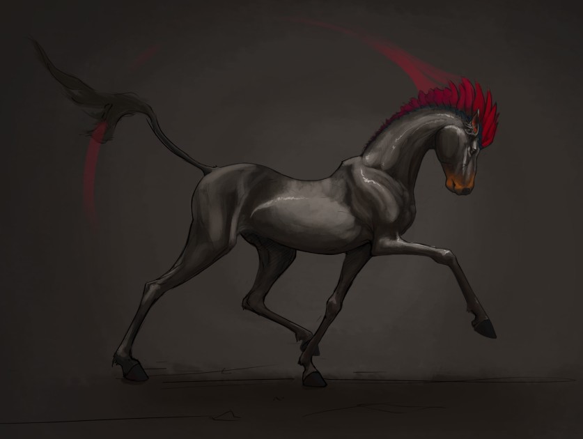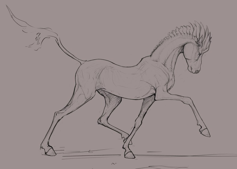 Started out as a deer/horse/dragon mix thing but ended up as a horse, however that drawing was too boring so I changed it back and added some really saturated colour. Took way too long though, like 6-7 hours. Process below!